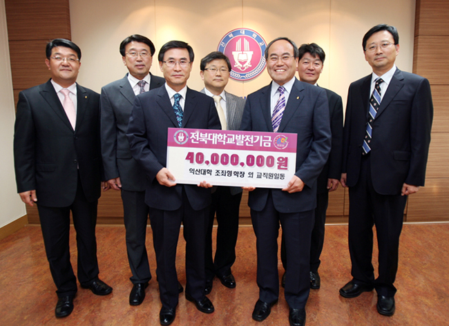 또한 이날 오후에는 우리 대학과 통합을 이룬 익산캠퍼스 조좌형 학장 및 교직원들이 모은 발전기금 4천만원을 기탁하였다.