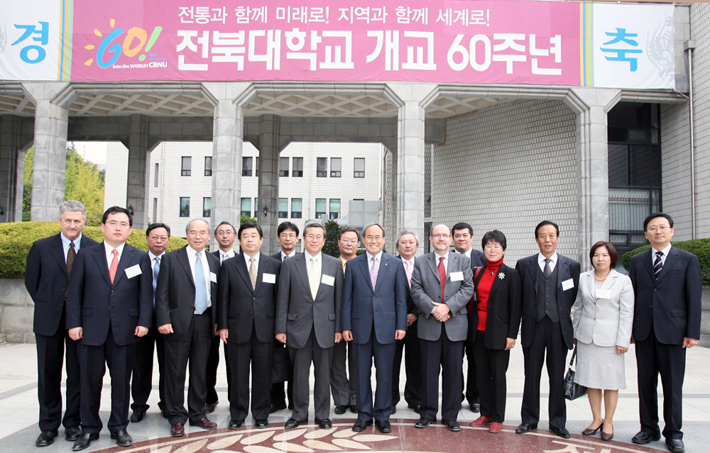우리 대학을 찾은 대학 관계자들은 중국 중남민족대학 까오 루이 총장, 태산의학원 왕 지아푸 총장, 미국 SAF 존 벨처 총장, 일본 치바대학 타케오 푸쿠시마 부총장, 우쓰노미야대학 미즈모토 타다타케 부총장, 대만 국립충싱대학 황용셩 부총장, 몽골과학기술대학 배투바이어 투데브 부총장, 프랑스 UTBM 필립 설튼 국제교류부장, 토호쿠대학교 시게루 사토 교수, 훗카이도대학교 토시히사 혼마 교수 등 우리 대학과 자매결연을 체결하고 있는 세계 각국의 총장단 일행과 코너 너피 주한 아일랜드 대사가 개교 60주년을 축하해주기 위해 방문하였다.