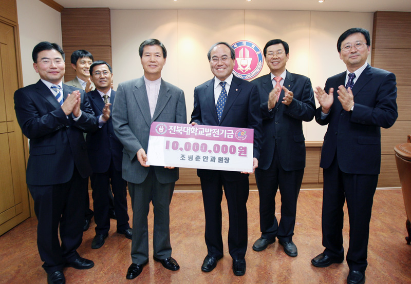 조 원장은 10월 31일(수) 오후 본부 4층 총장실에서 발전기금 1천만원을 서거석 총장에게 전달했다.