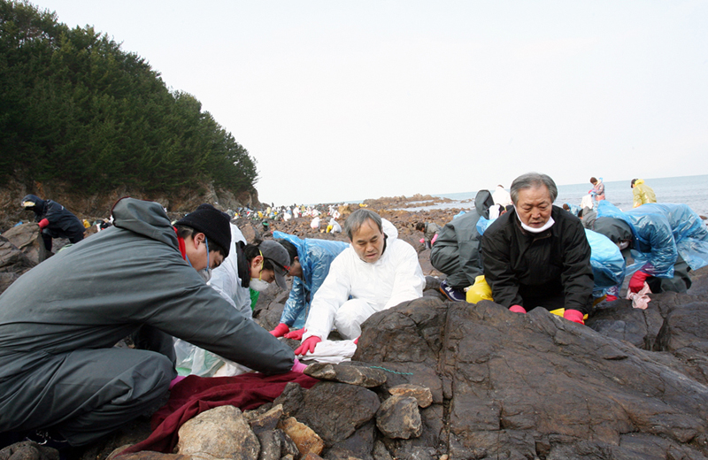 이날 오전 10시 파도리 현장에 도착, 기름과 힘겨운 싸움을 하고 있는 주민들을 도와 해변가로 밀려온 기름때를 제거하는 역할을 맡았다. 모래 속으로 깊이 스며든 기름때를 제거하기 위해 삽, 호미까지 동원, 해변을 파헤쳐 일일이 기름을 닦아냈다.