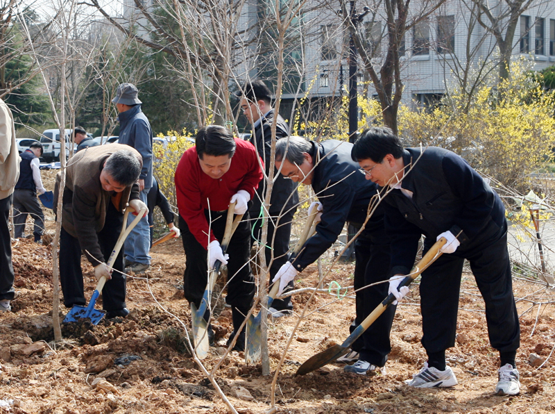 구성원들은 이날 중앙도서관 뒤편에 유휴지에 이팝나무 300그루, 왕벚나무 300그루 등을 식재했다.