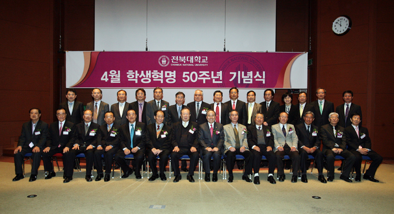 우리대학이 불의에 굴하지 않았던 당시 전대인들의 불굴의 정신을 기리기 위해 4월 학생혁명 50주년을 맞아 4월 19일 오전 11시 법학전문대학원 본관 바오로홀에서 기념식을 가졌다.