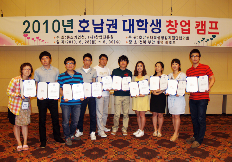 이들은 최근 중소기업청과 (사)창업진흥원 주관으로 열린 호남권 대학생 창업캠프 창업시뮬레이션 경진대회에서 8개 대학 9개팀과 경쟁해 당당히 최우수상의 영예를 안았다.