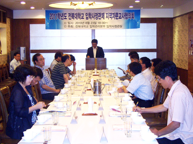 우리대학은 지난 8월 23일 동문교사 출신들 중 전북지역 소재 고교 3학년 진학지도를 맡고 있는 20명의 입학사정관제 지역자문교사협의회를 갖고 2011학년도 입학사정관 전형에 관한 주요 내용과 2012학년도 전형계획 등의 설명회와 함께 전형 전반의 개선사항 등 의견수렴을 실시했다.