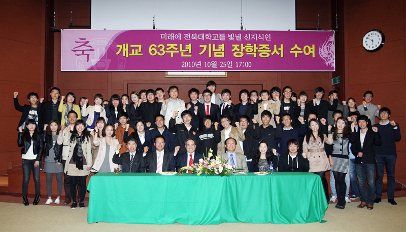 이날 장학금 전달식에서 서거석 총장은 “개교 63주년을 맞아 성적이 우수하고 미래 성취하고자 하는 목표가 분명한 학생에게 장학금을 지급해 개인 역량을 높일 수 있는 발판으로 삼고자 한다”라며 “학생들에 대한 장학금 등 지속적인 지원을 확대해 보다 안정적으로 학업에 열중하고 취업준비를 할 수 있는 기반을 조성해 나갈 생각이다”라고 말했다.