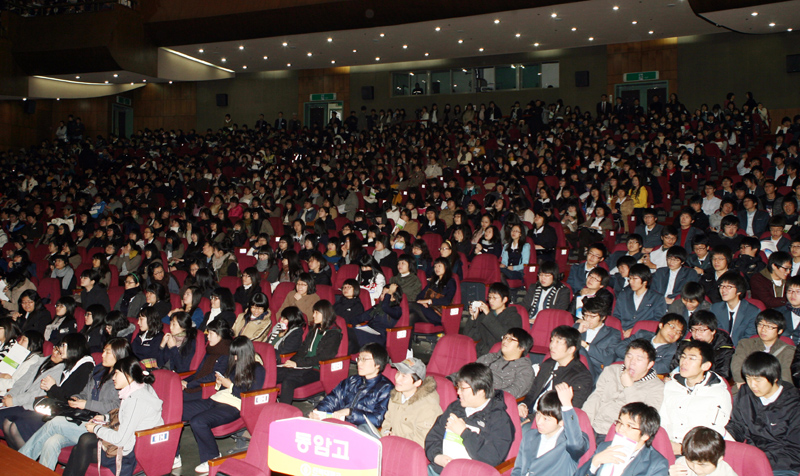 특히 설명회 이후 2부 순서에서 기존의 입시 소개 중심의 딱딱한 형식에서 벗어나 수험생들의 눈높이에 맞는 입시설명회를 위해 동아리 공연 및 레크레이션 시간이 진행돼 학생들에게 보다 유익한 입시 정보 나눔의 장이 됐다.