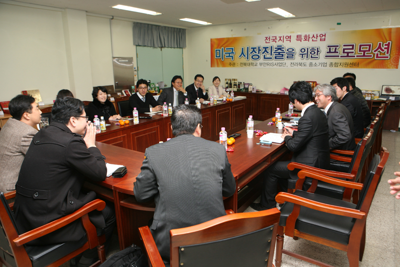 부안지역연고산업육성사업단(이하 부안RIS사업단)과 전라북도 중소기업종합지원센터는 12월 1일 농업생명과학대학 본관 206호에서 미국 대형유통업체 H-mart 납품담당인 굿맨파트너스(대표 권태형)와 전국 특화산품의 홍보 프로모션을 공동으로 진행하고, 전국 특화산업 관계자와 각 지역의 특화산품 수출을 위한 업무협약을 체결했다.