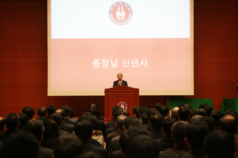 우리대학이 1월 3일(월) 오전 11시 법학전문대학원 본관 가인홀에서 서거석 총장을 비롯해 본부 보직교수, 단대학장, 교직원 등 500여명이 참석한 가운데 시무식을 갖고 2011년을 힘차게 시작했다.