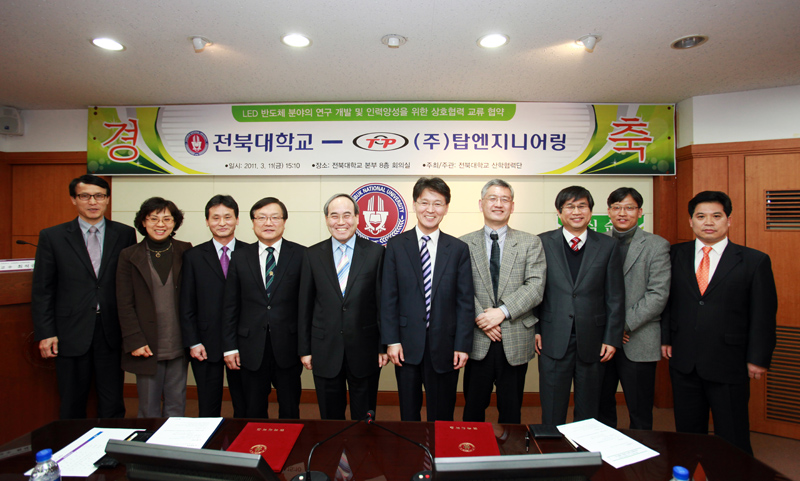 서거석 총장은 “LED 시장의 높은 성장세가 예상되는 가운데 우리대학 역시 반도체과학기술학과를 중심으로 LED 산업 인력 양성을 하고 있으며, LED융합기술지원센터와 반도체물성연구소를 중심으로 연구 역량을 키워가고 있다”며 “이러한 인적 자원과 연구인프라를 갖춘 우리대학과 세계적 기술력을 보유한 탑엔지니어링이 긴밀히 협력해 LED산업의 신기술 창출과 연구 성과를 내 국가 발전에 큰 기여를 할 수 있길 바란다”고 말했다.