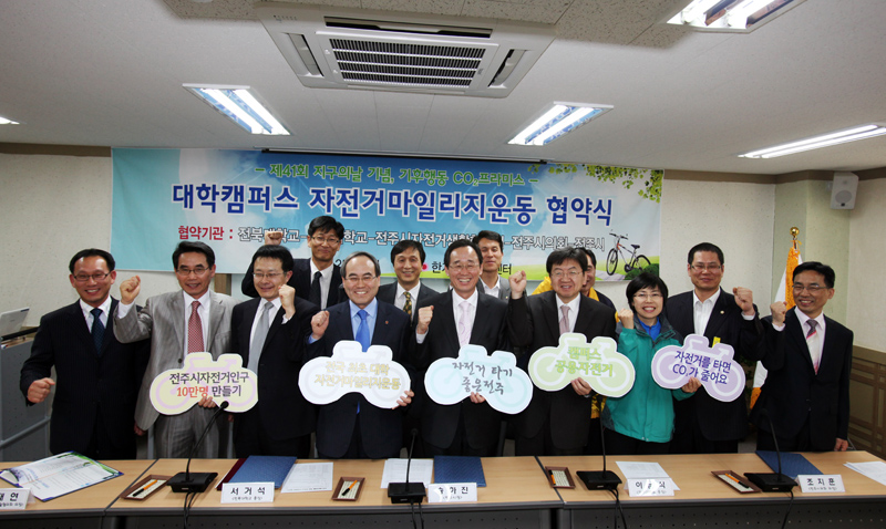 우리대학은 2011년 에코캠퍼스 조성의 일환으로 ‘자전거 마일리지 운동’을 시행키고 하고, 4월 25일 오후 4시 한지산업지원센터에서 전주시와 전주시의회, 전주시자전거생활협의회, 전주대 등과 협약을 체결했다.