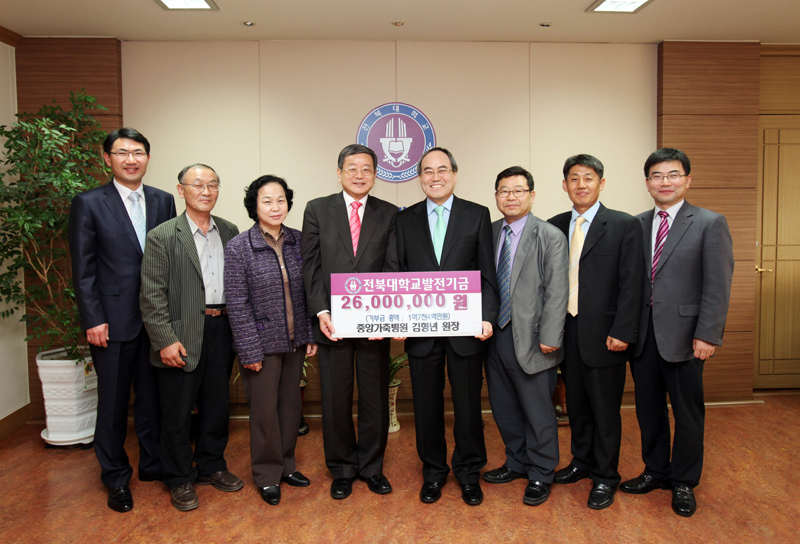 지난 2003년부터 매년 수 천만 원씩의 장학금을 기탁하고 있는 김 원장은 올해도 어김없이 5월 2일 오후 2시 모교를 방문해 서거석 총장에게 2천600만 원의 발전기금을 전달했다.