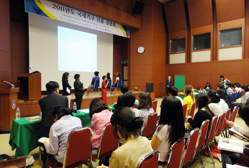 우리대학이 5월 30일 오전 9시~오후 1시까지 유엔사무국과 유엔산업개발기구, 국제노동기구 등 주요 국제기구 인사담당자를 초청해 국제기구 진출 설명회 자리를 가진 것.