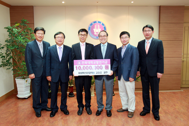지난 2007년 발전기금을 기탁한 바 있는 고 교수는 6월 7일 오전 9시 30분 서거석 총장을 찾아 다시 한 번 대학발전기금 1천만원을 기탁했다.