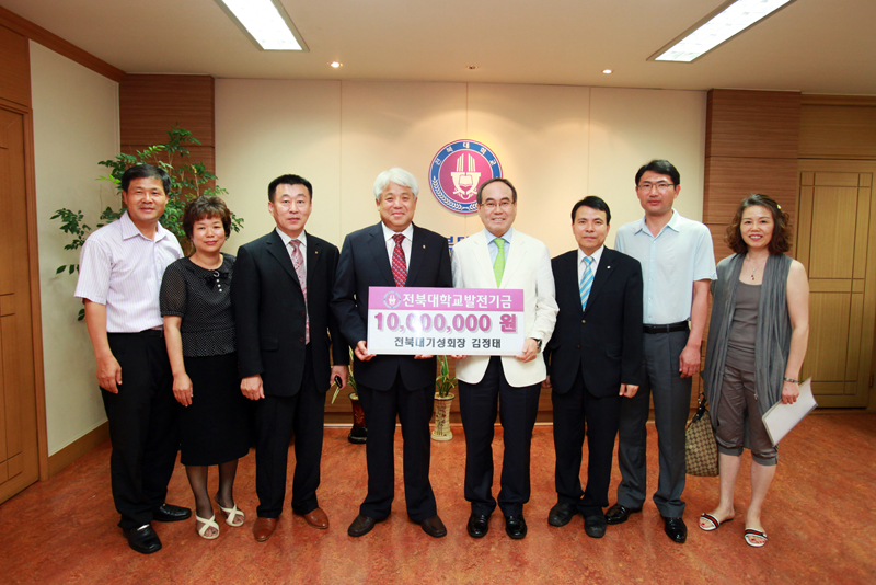 김정태 기성회장은 7월 27일 오후 3시 30분 현정기·이은미 부회장과 진희·김덕영 감사 등 기성회 임원들과 함께 서거석 총장을 찾아 발전기금을 전달했다.