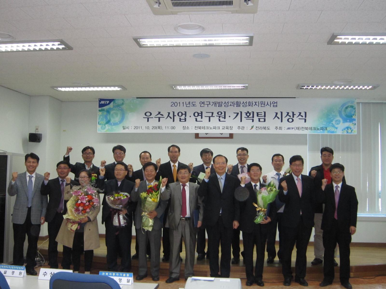 신재생에너지산업 인재양성센터(센터장 설경원)가 전라북도와 (재)전북테크노파크가 주관하는 ‘2011년 연구개발 성과 활성화 지원사업’에서 우수사업 분야 우수상을 수상했다.