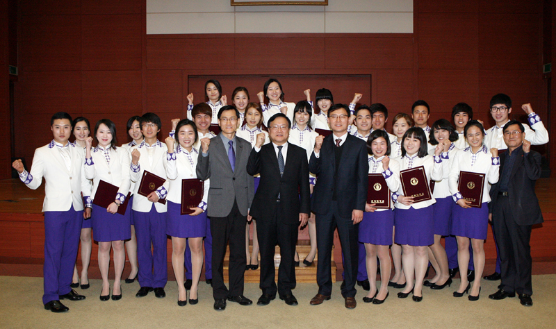 이날 행사에서는 지난 2011년 한 해 동안 대학 이미지 제고를 위해 많은 노력을 기울여 왔던 정유진 학생(철학과 3년) 등 15명에게 수료장이, 그리고 3월 2일부터 1년간 새롭게 활동을 펼칠 이효규(동물자원학과 3년) 학생 등 15명의 신임 홍보대사들에게 임명장이 각각 수여됐다.