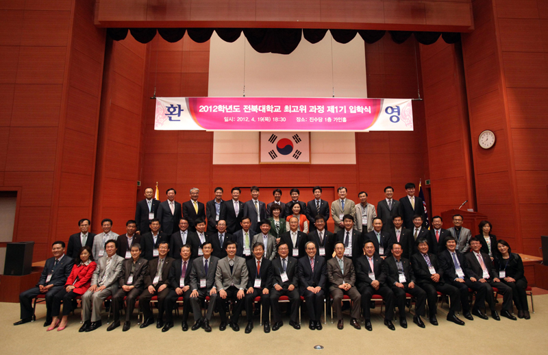 우리대학은 4월 19일 오후 6시 30분 진수당 1층 가인홀에서 서거석 총장을 비롯한 본부 보직자들과 65명의 최고위 과정생들이 참석한 가운데 2012학년도 최고위과정 입학식을 가졌다.