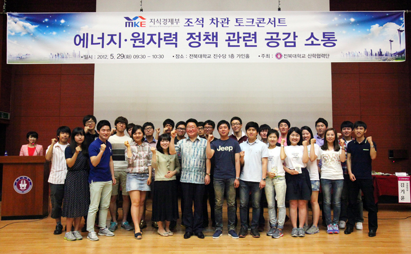 우리대학이 5월 29일 오전 9시 30분 진수당 가인홀에서 연 지식경제부 조석 차관 초청 토크 콘서트에서 조 장관은 ‘우리나라 에너지 현실과 바람직한 방향’을 주제로 학생들과 자유로운 소통의 시간을 가졌다.
