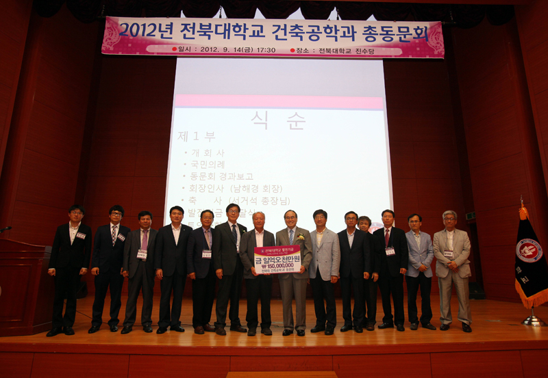 이 장학기금은 사회 각계각층에서 활동하고 있는 건축공학과 동문들이 후배들에게 보다 좋은 환경을 만들어 주자는 취지에서 십시일반 조성한 것.