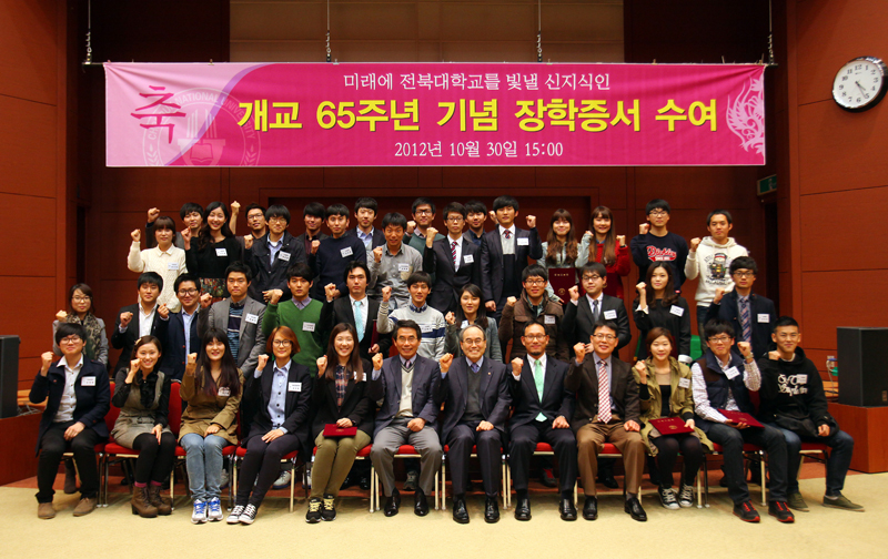 개교 65주년 장학금은 학생 스스로의 역량 계발에 적극적이고 국가와 지역발전을 선도할 우수 인력 양성을 위해 학생들의 신청을 받아 주요 실적을 면밀히 평가한 뒤 선정한 것.
