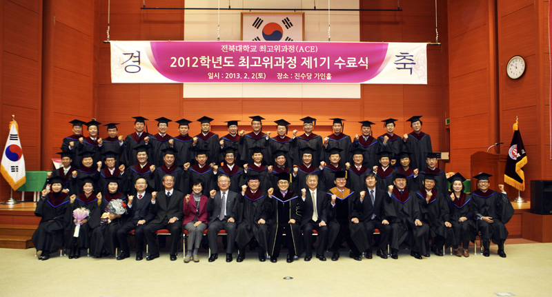 이날 수료식에는 서거석 총장을 비롯해 대학본부 보직 교수와 안춘엽 제1기 원우회장, 최백렬 최고위과정 주임교수, 가족 등이 참석해 수료생들을 축하했다.