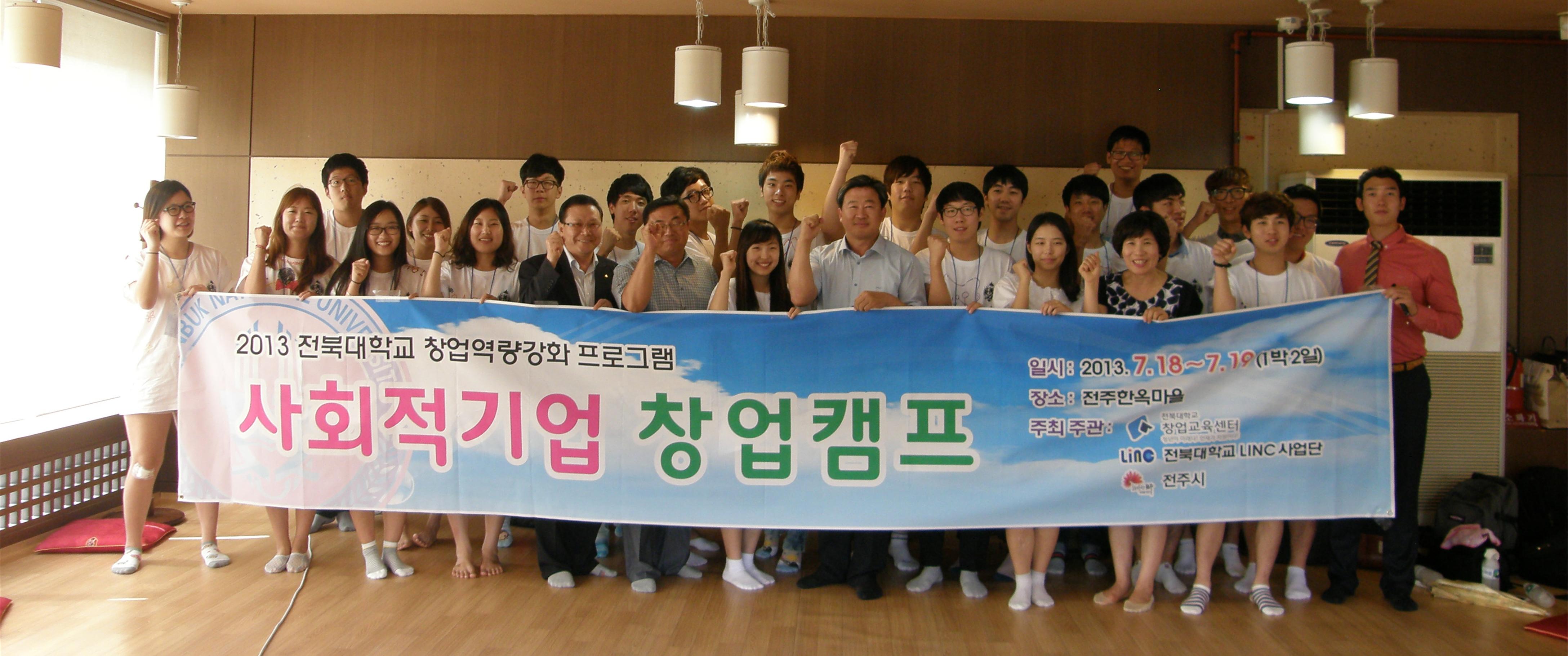 청년들에게 창업 기회의 문을 열어주기 위해 산학협력단 창업교육센터와 LINC사업단, 전주시가 공동 주관한 사회적기업 창업캠프가 7월 18일과 19일 양일간 전주 한옥마을 일원에서 성황리 개최됐다.