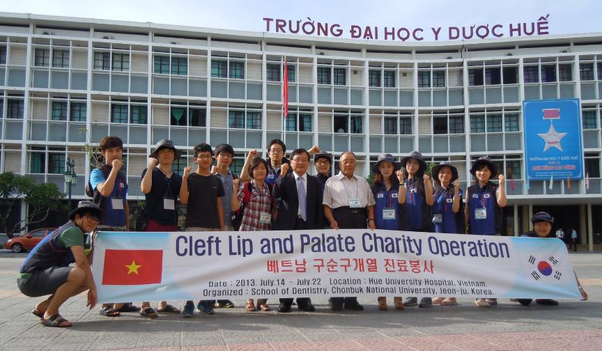 치전원 구강악안면외과 신효근, 백진아 교수 등 13명으로 구성된 해외진료봉사단은 최근 일주일 간 베트남 후에대학병원에서 매일 8~10명씩 모두 38명의 구순구개열 수술을 마쳤다.