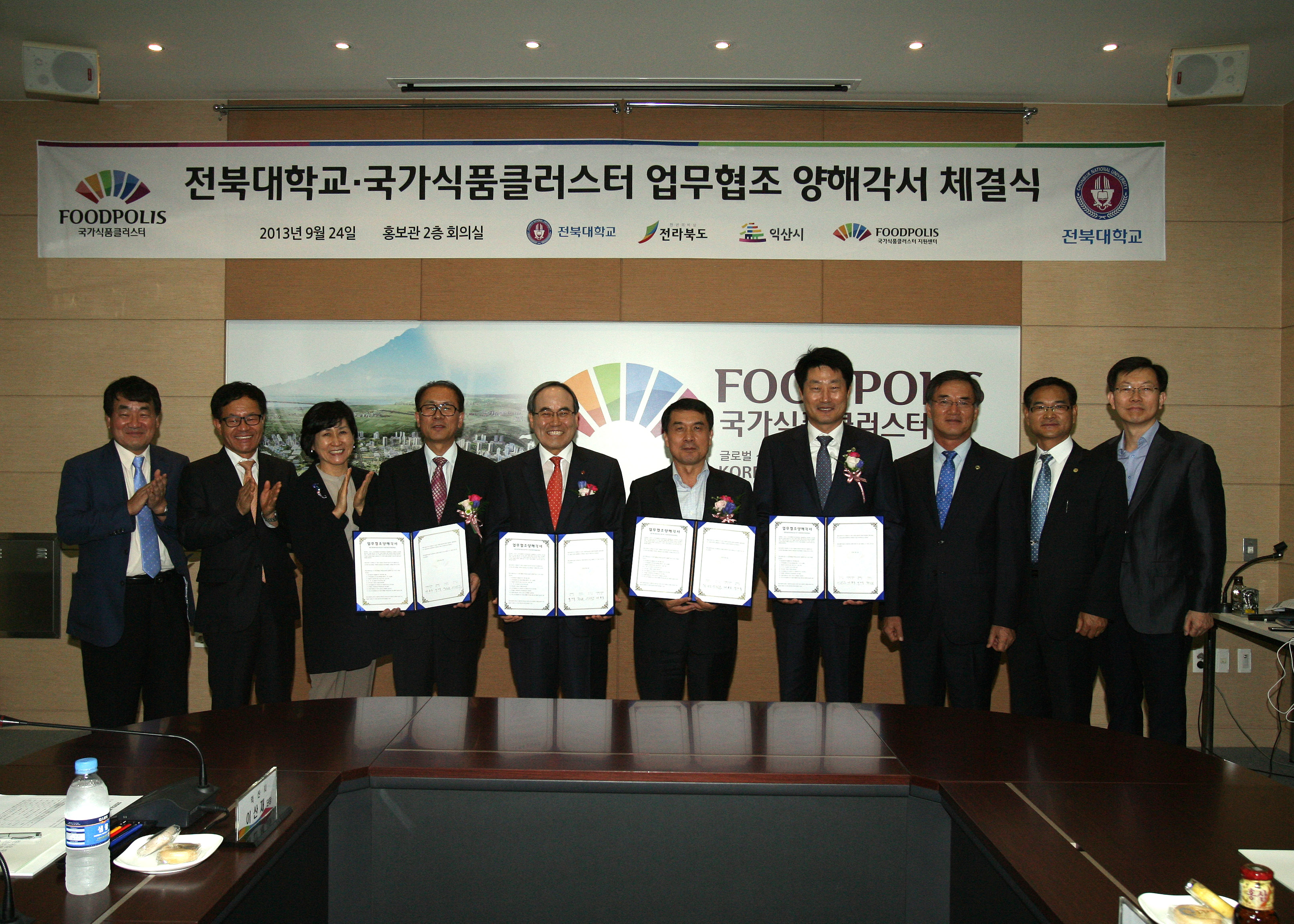 이를 위해 4개 기관은 9월 24일 오후 2시 30분 서거석 총장과 박성일 전북도 행정부지사, 이한수 익산시장, 박종국 국가식품클러스터지원센터 이사장 등이 참석한 가운데 국가식품클러스터 발전을 위한 투자협약을 체결했다.