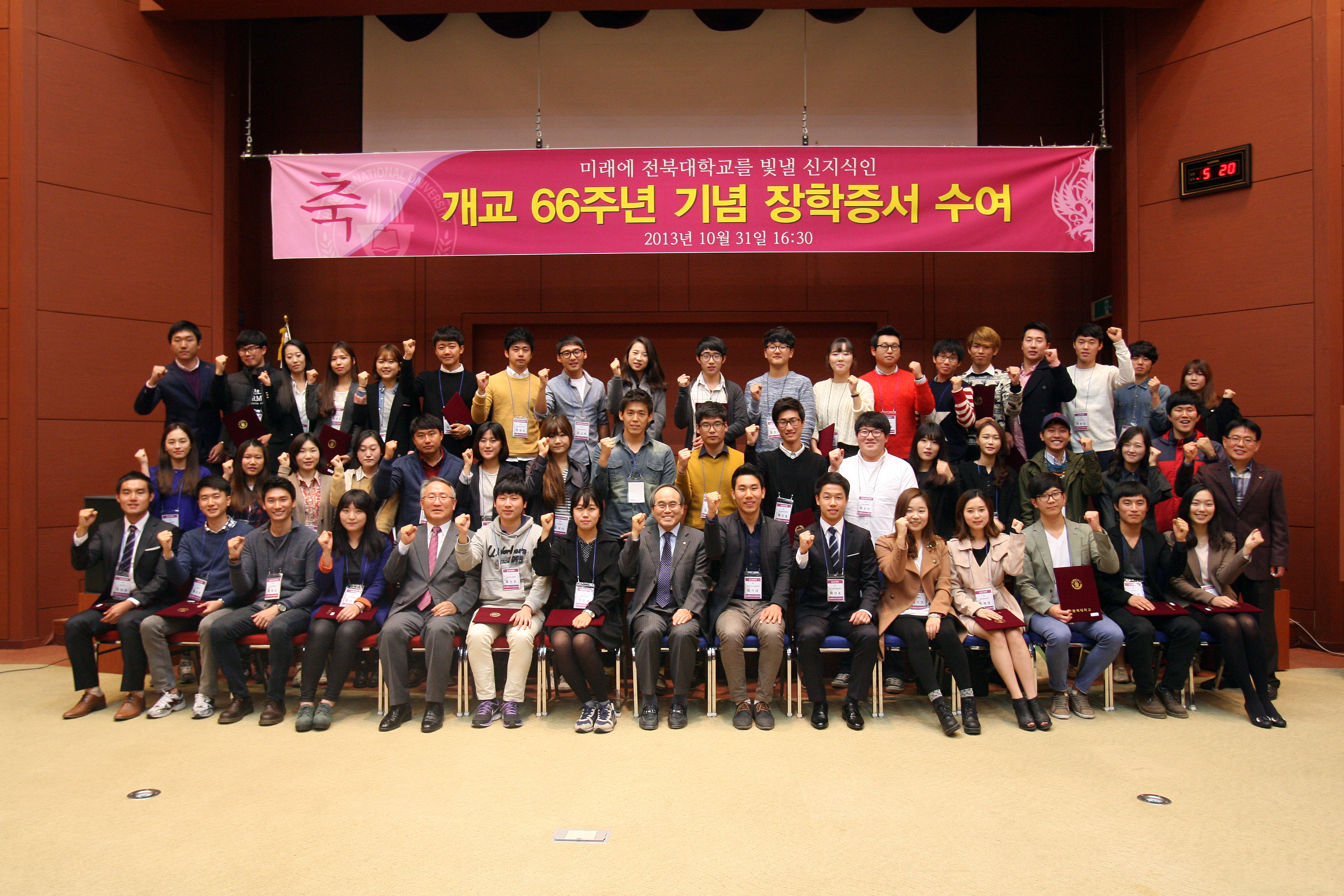 우리대학이 10월 31일 오후 자기계발이 우수한 학생 60명을 선발, 이 학생들을 ‘전대 신지식인’으로 명명하고 100만원씩 모두 6천만 원의 장학금을 전달했다.