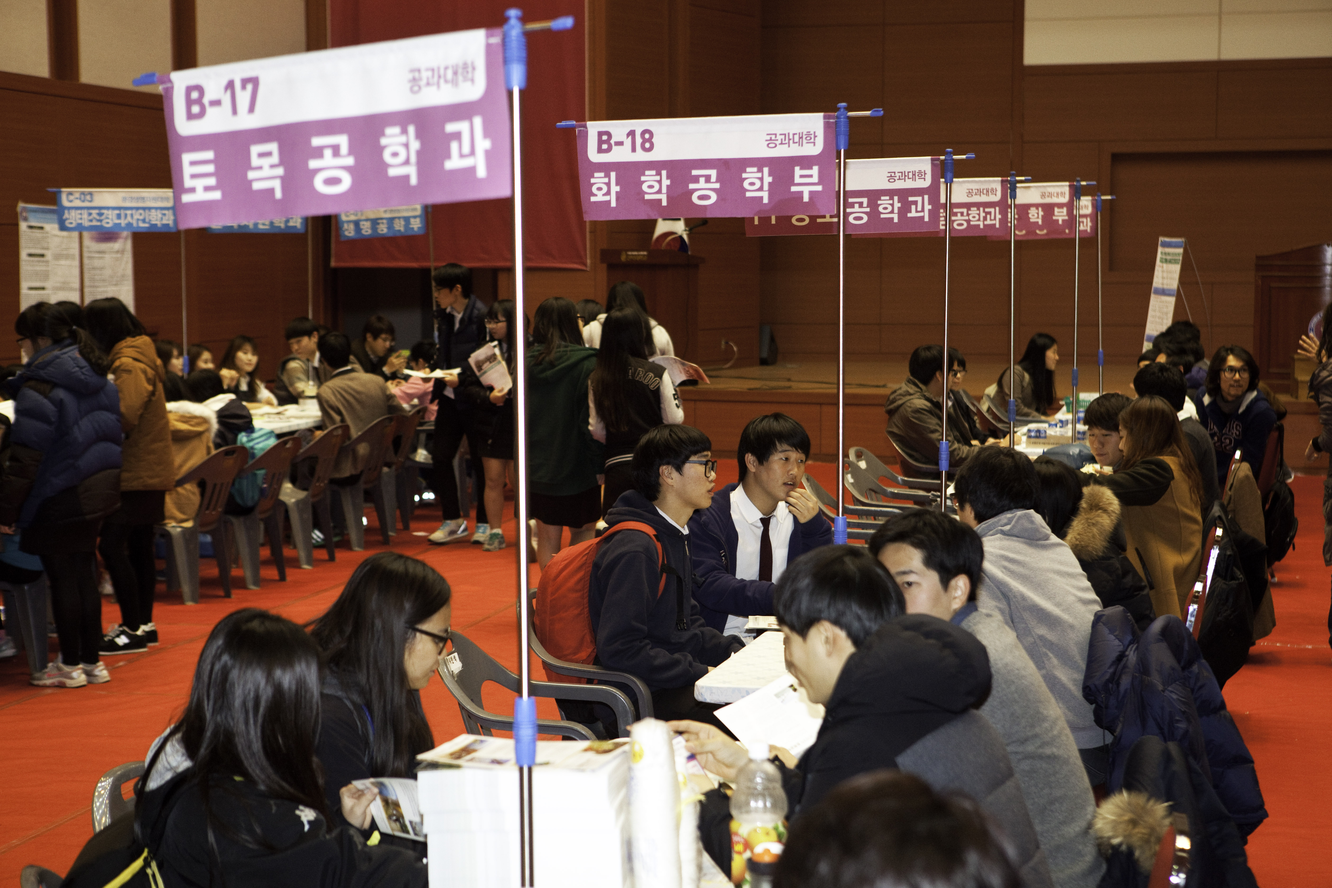 11월 18일 진수당 일원. 추운 날씨 속에도 고교생들의 호기심어린 눈빛과 학과별로 설치돼 있는 부스의 참여 열기가 넓은 공간에 하루 종일 가득하다.