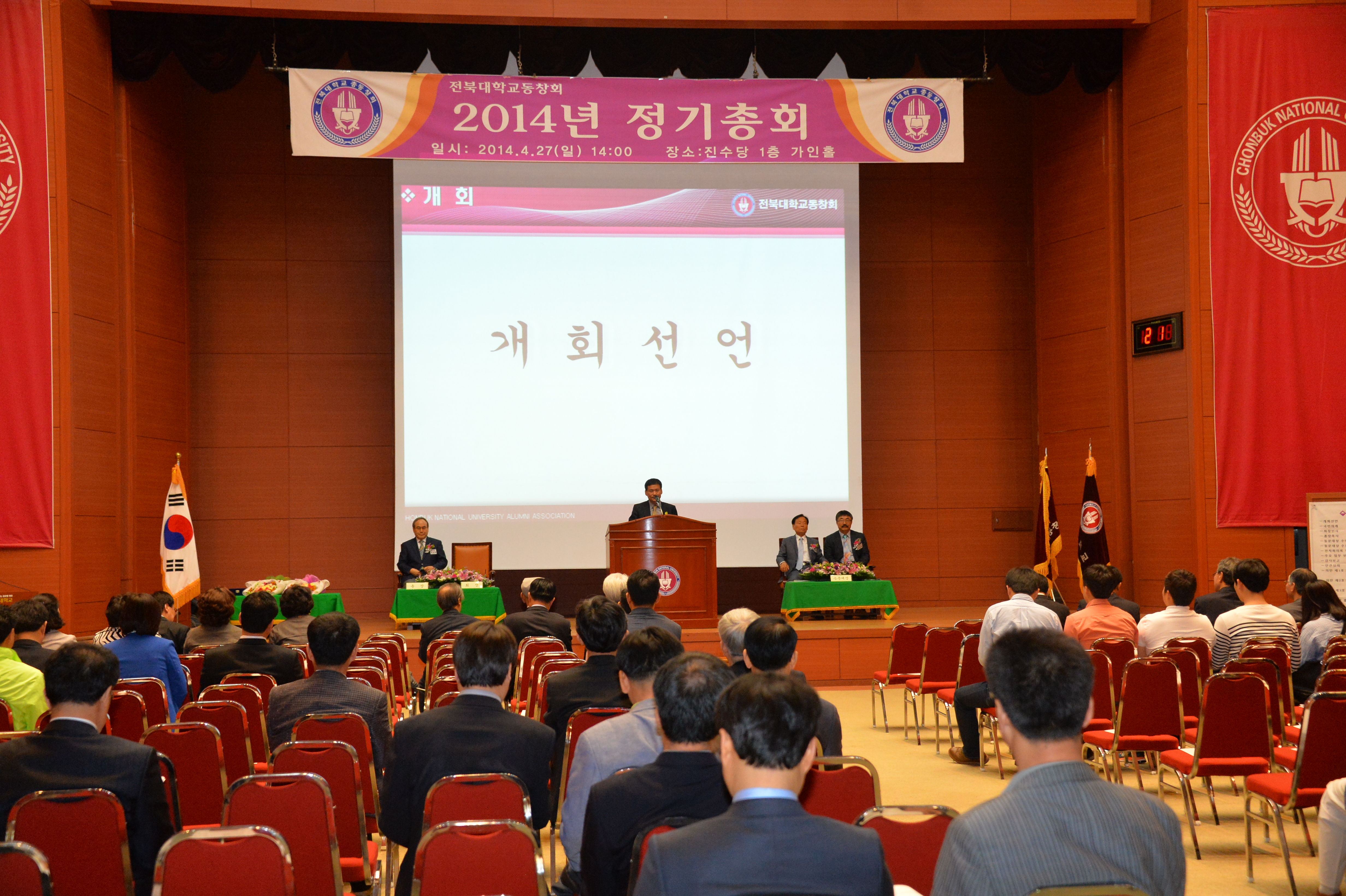 우리대학 총동창회 2014 정기총회가 4월 27일 오후 2시 진수당 가인홀에서 서거석 총장과 동문, 임원 및 대상 수상자 등 200여명이 참석한 가운데 개최됐다.