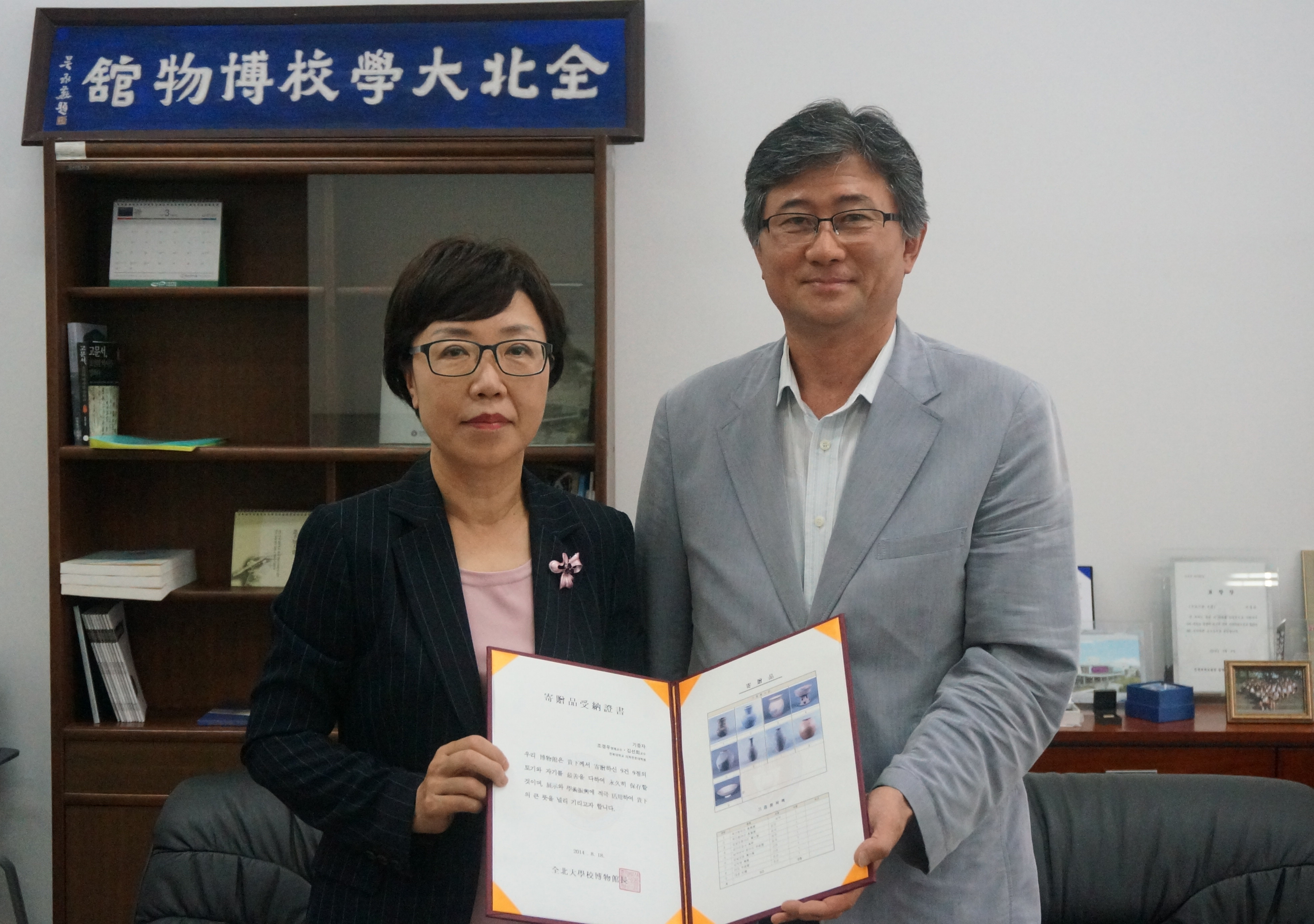 생리학교실 조경우 명예교수와 김선희 교수는 그동안 생리학교실에서 소장해오던 조선시대 자기를 비롯한 9점을 지난 18일 박물관에 기증했다.