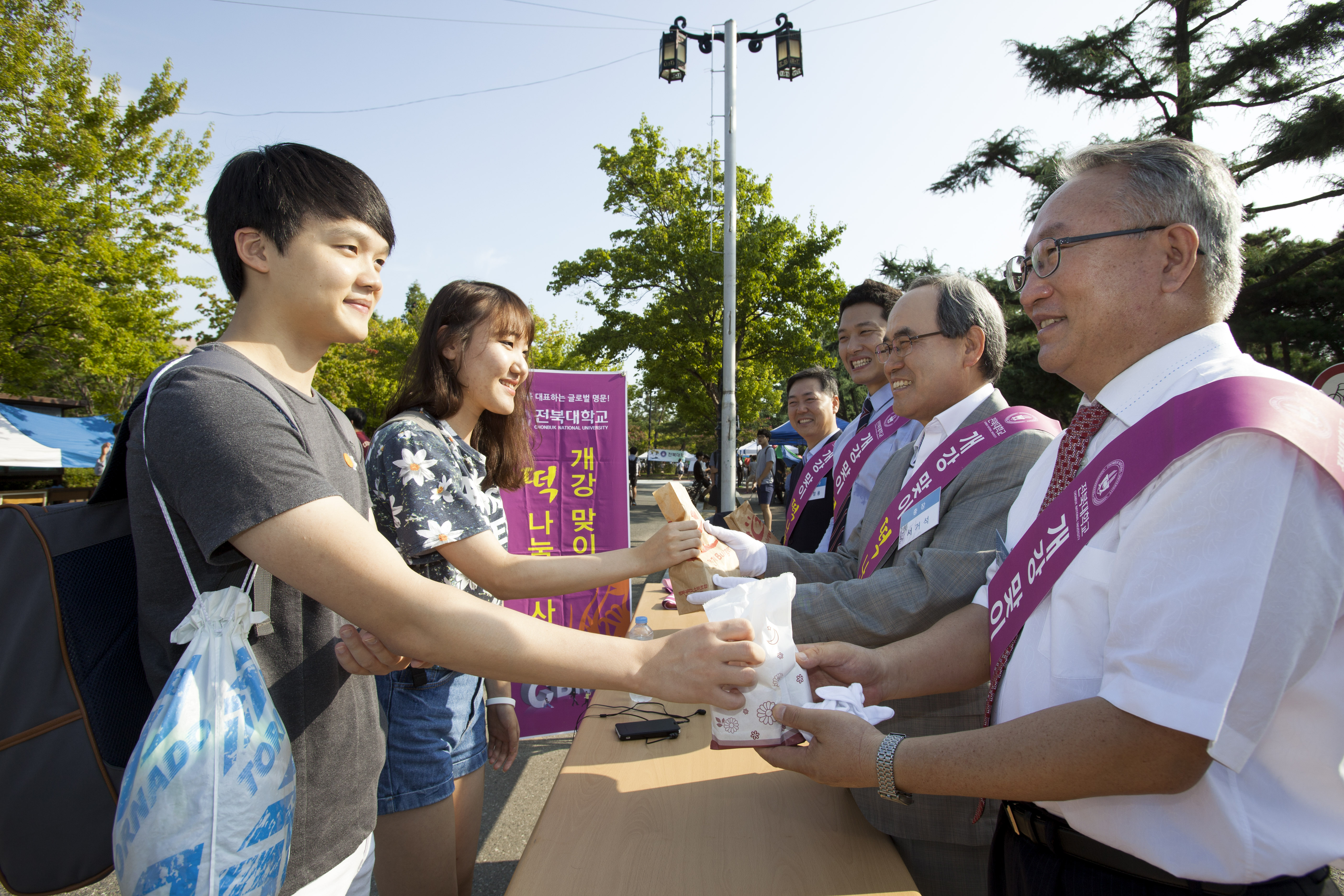 한편, 우리대학은 학생들과의 소통을 강화하기 위해 지난 2011년 2학기 개강부터 학생들에게 간식을 나누는 행사를 진행해 오고 있다. 개강뿐 아니라 중간·기말고사, 여름 특별학기 등에 서거석 총장을 비롯한 보직 교수들이 직접 학생들을 찾아가는 행보로 큰 호응을 얻고 있다.