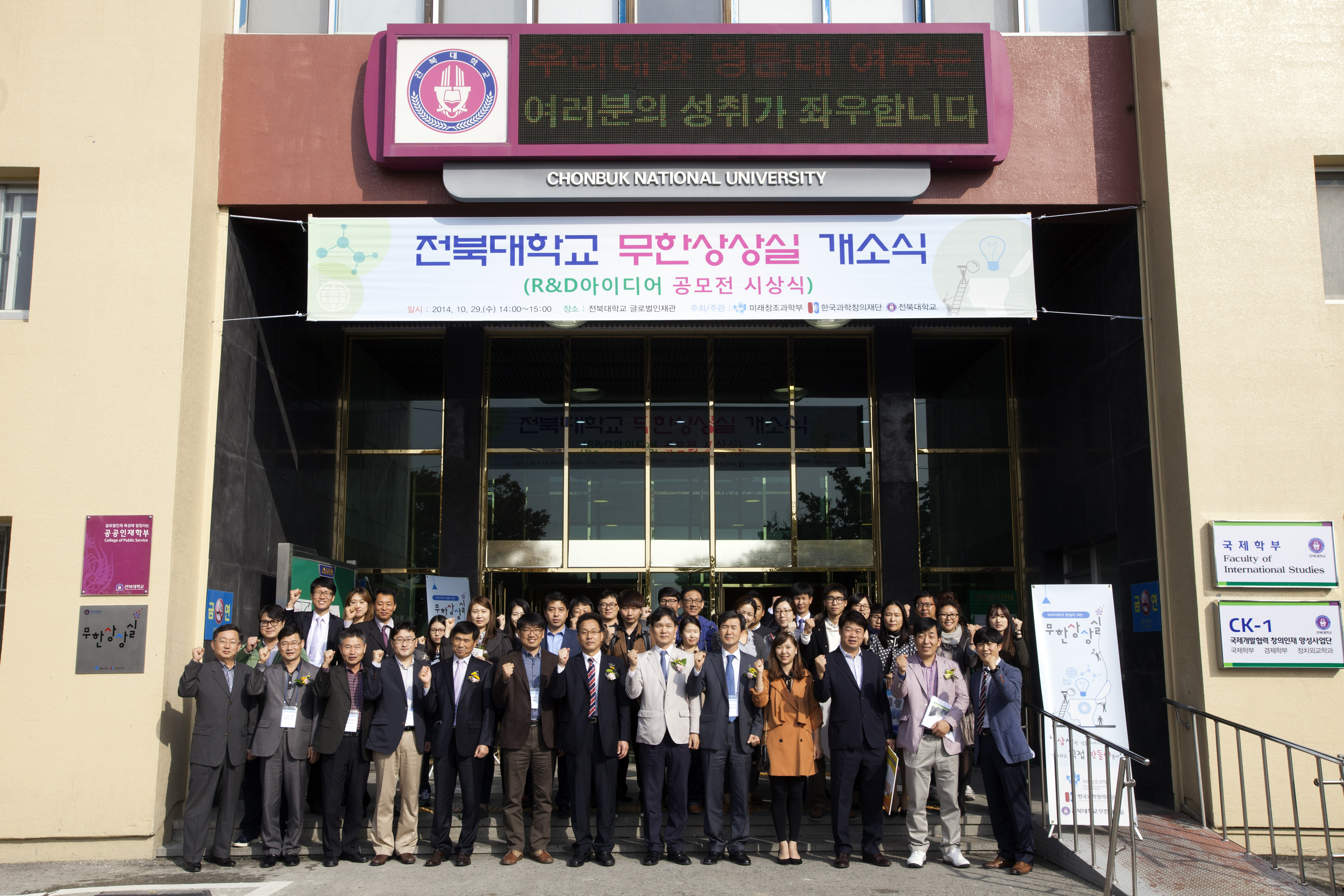 우리대학은 정부 창조경제 핵심사업의 일환인 ‘무한상상실’ 전북 거점센터에 선정돼 10월 29일 오후 2시 글로벌인재관에서 개소식을 갖고 본격 활동에 돌입했다고 밝혔다.