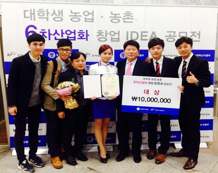 지역건설공학과 학생팀이 지난 11월 7일 농림축산식품부와 한국농어촌공사가 주관한 ‘대학생 농업·농촌 6차 산업화 창업아이디어 공모전’에서 농림축산식품부 장관상인 대상을 수상했다.
