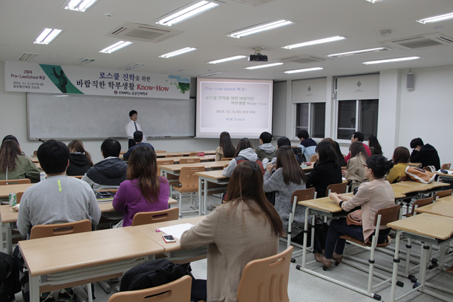 이어 지난 11월 5일에는 로스쿨 출신으로 현장에서 재직하고 있는 박병건 변호사를 초청해 ‘로스쿨 진학을 위한 바람직한 학부생활 노하우’라는 주제로 특강을 가졌다.