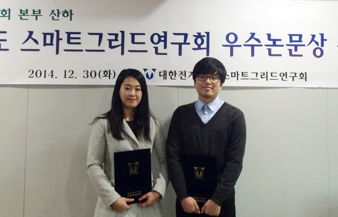 이 연구실 소호연, 강보람 연구원(지도교수 국경수)은 ‘국내 실증단지 적용을 위한 모듈형 복합 분산전원 시스템 모의운영 방안’이라는 논문을 발표, 지난 12월 30일 한국전력 본사에서 열린 시상식에서 대상의 영예를 안았다.