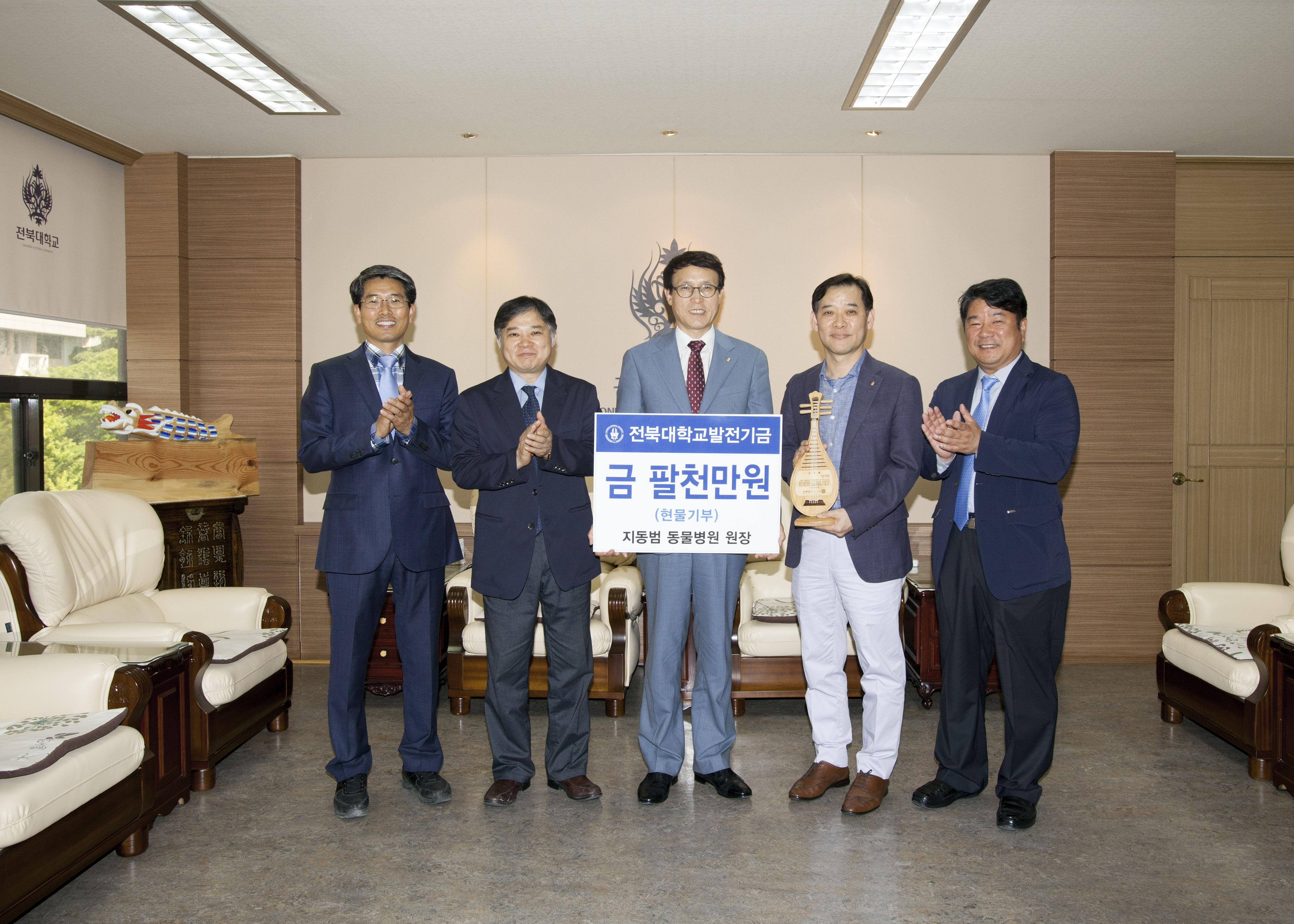 수의대 동문인 지동범 원장(지동범 동물병원·수의학 84학번)이 전북대 동물병원의 진료 개선에 써달라며 8천만 원 상당의 진료 기기를 수의대에 기부했다.