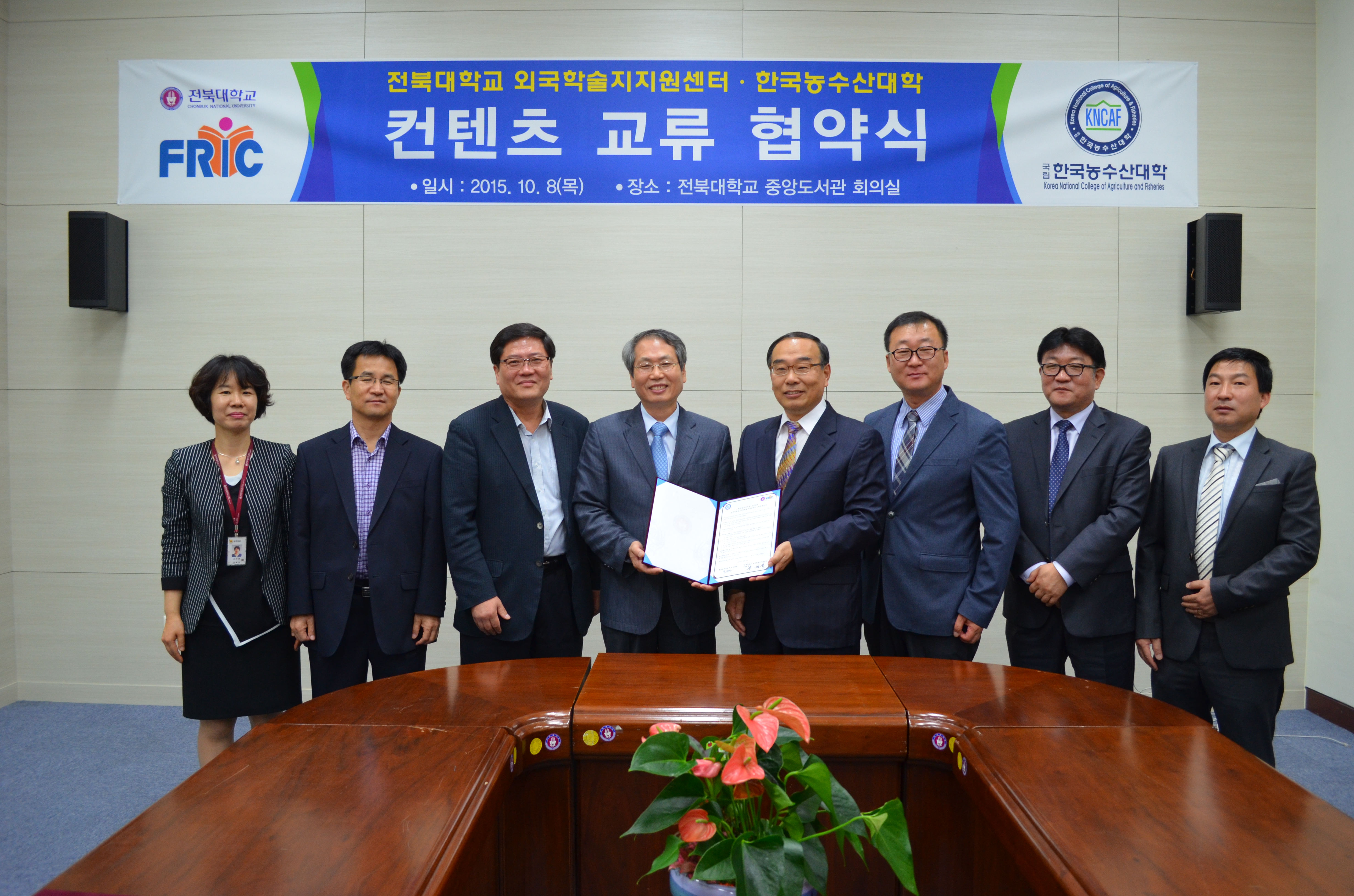 양 기관은 10월 8일 오전 11시 도서관에서 이상귀 도서관장과 홍규현 한국농수산대학 도서관장 등 주요 관계자들이 참석한 가운데 협약식을 가졌다.
