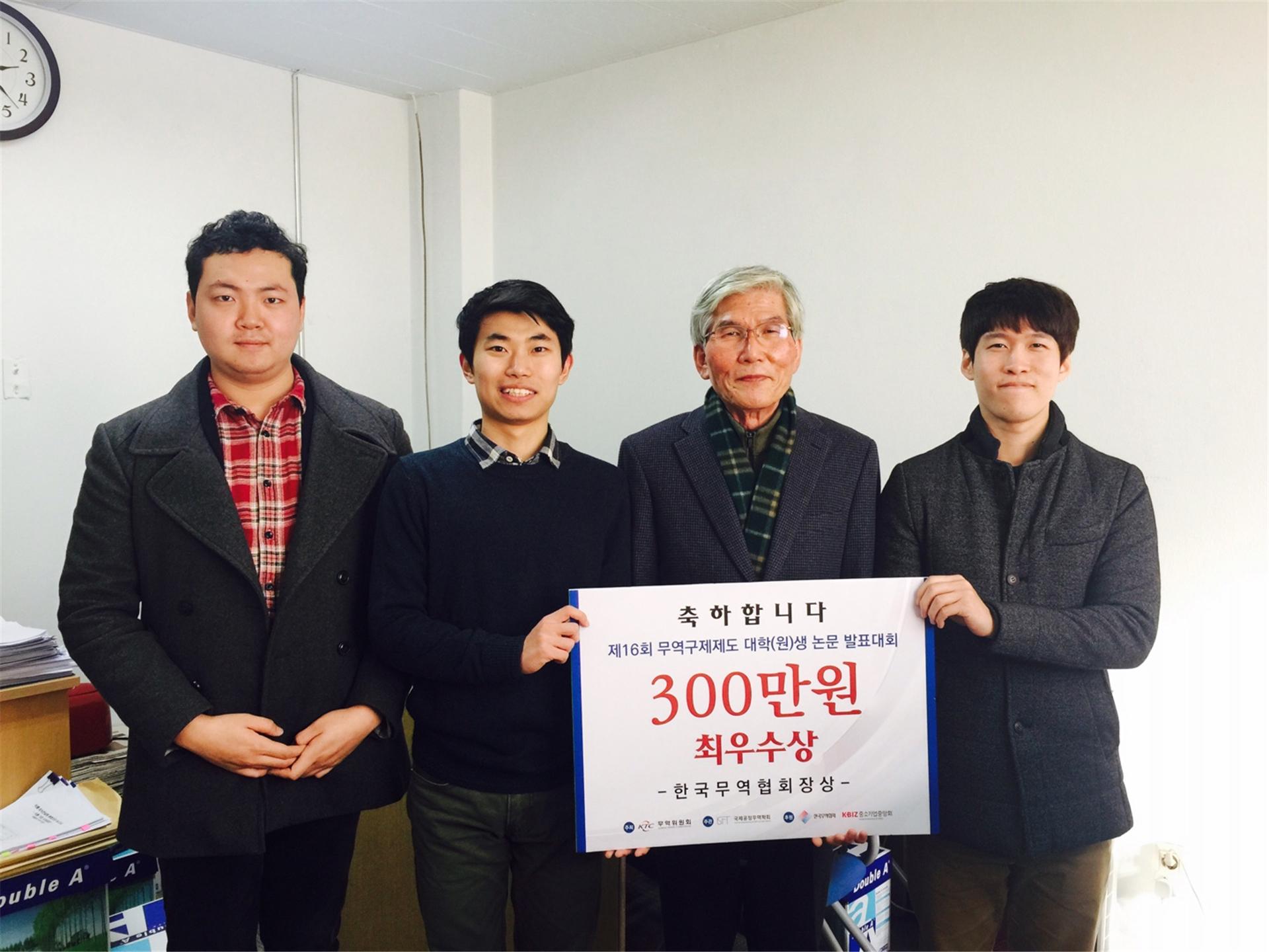 GTEP사업단 조준혁(무역학과 3년), 김강문(무역학과 3년), 허요한(무역학과 4년)등 3명은 산업통상자원부 무역위원회 주최로 최근 한국무역협회에서 열린 ‘2015 전국 대학생 무역구제 논문발표대회’에서 최우수상의 영예를 안았다.