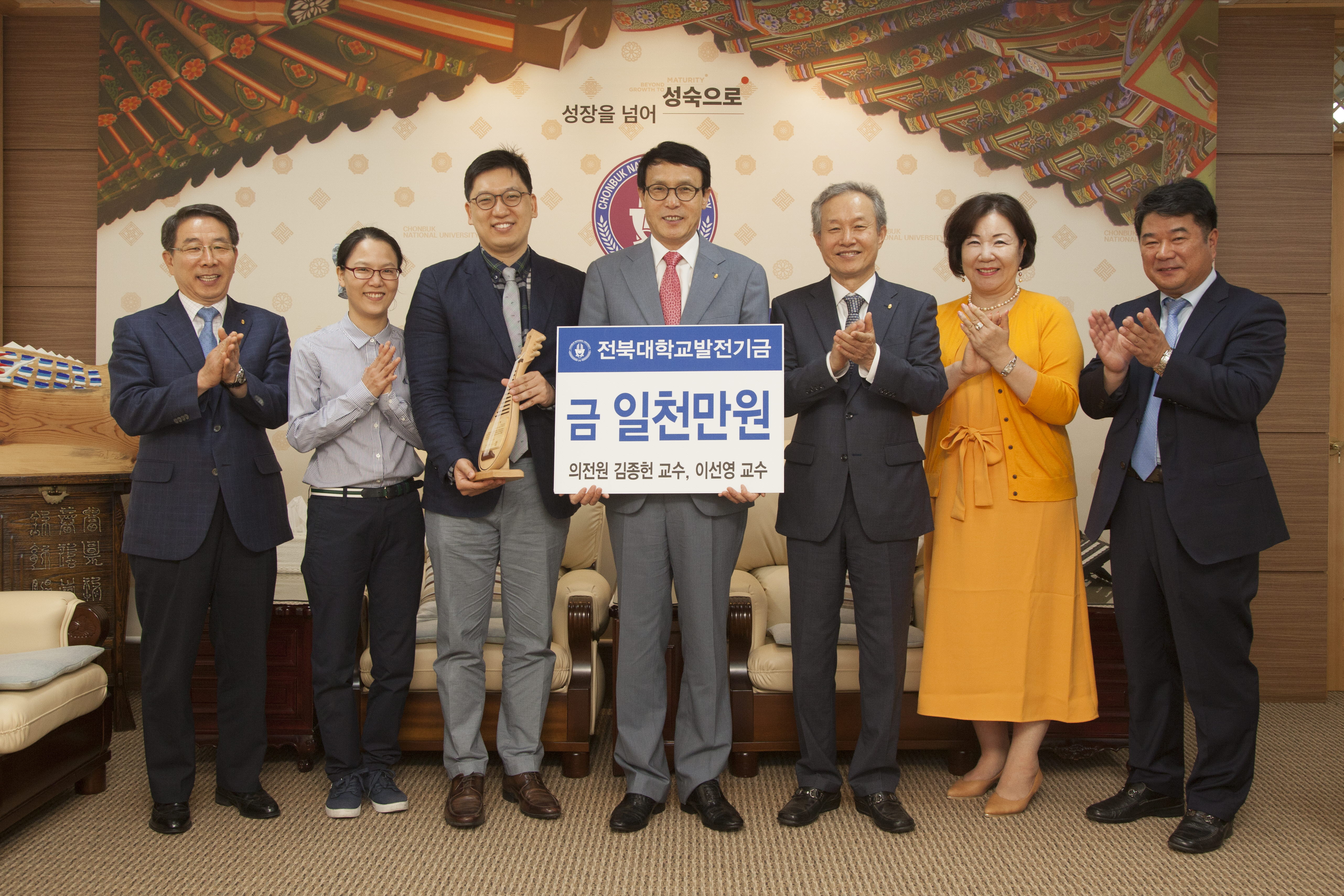 이남호 총장도 발전기금 기탁식을 열어 이들 부부에게 감사패를 전달하며 감사의 뜻을 전했다.