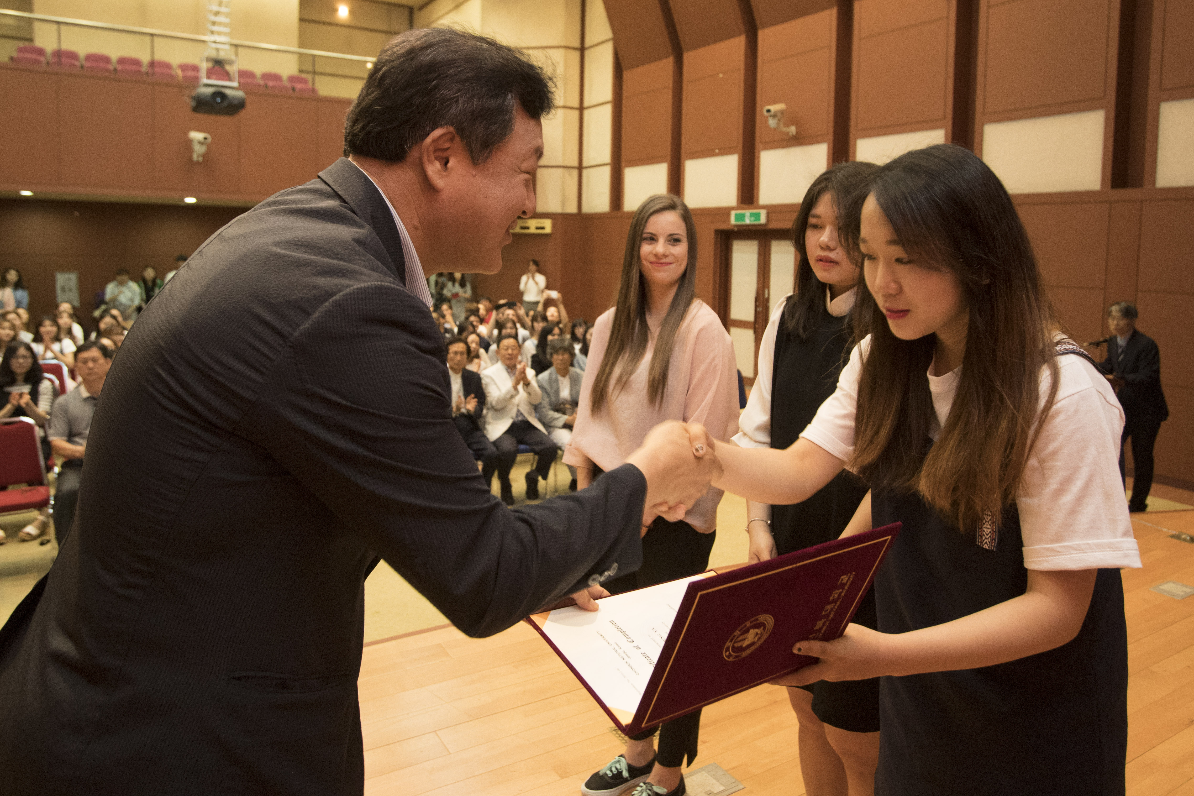 17일 오전 9시부터 진수당 바오로홀에서 진행된 이번 수료식의 주인공은 중국과 일본, 스페인, 인도네시아, 베트남, 타지키스탄, 우즈베키스탄 등 다양한 국적을 가진 교환학생 141명. 신양균 교학부총장과 양문식 대외협력부총장, 유학생지원센터 상담교수, 유학생지원센터 직원 및 외국인 재학생들이 참석해 이들의 수료를 축하했다.