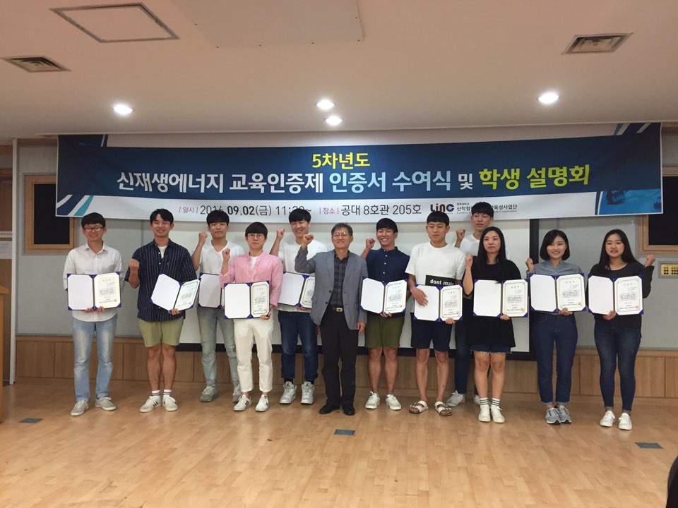 우리대학 LINC사업단(단장 설경원)이 지역 신성장동력산업인 신재생에너지 산업 전문 인력 양성을 위해 실시하고 있는 ‘신재생에너지 교육인증제’가 4년째 이어지며 학생 취업률 향상에 큰 도움을 주고 있다.