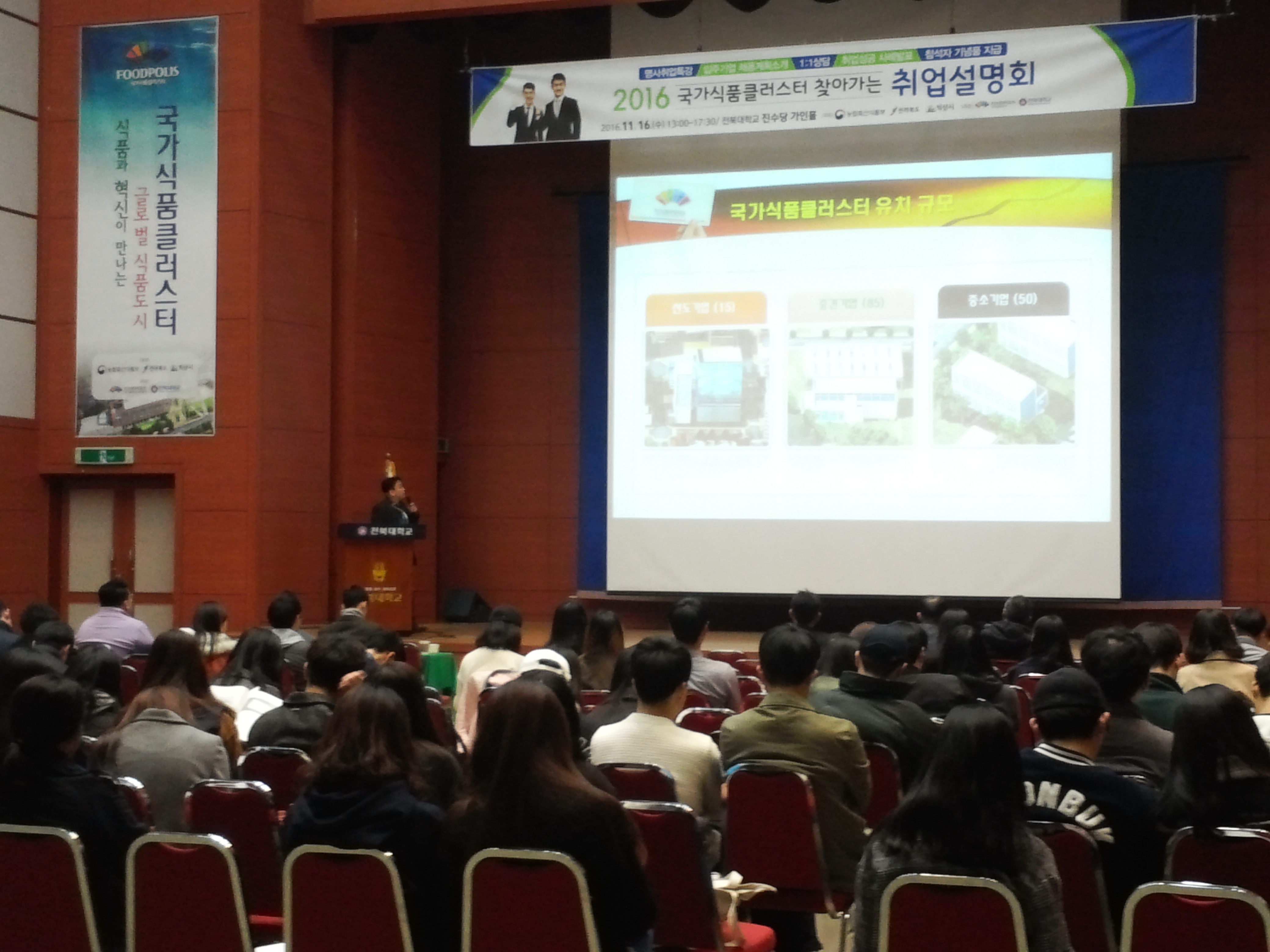 전북 익산에 조성 중인 국가식품클러스터 입주기업에 대한 채용 정보 등을 만나볼 수 있는 ‘국가식품클러스터 찾아가는 취업설명회’가 16일 오후 우리대학에서 성황리에 개최됐다.