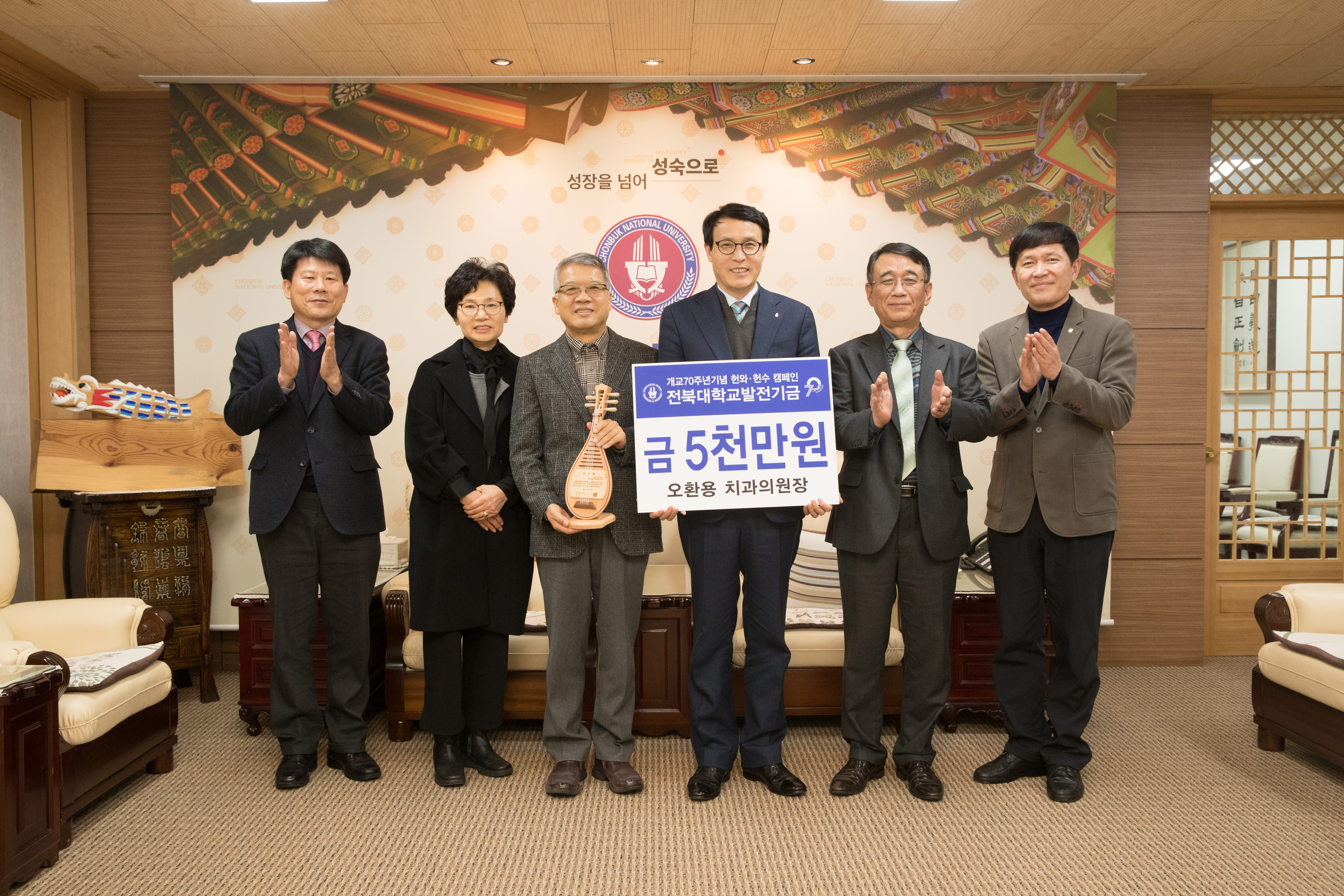 오환용 치과원장(우리대학 치의학박사)이 우리대학 개교 70주년을 기념하고, 대학발전에 힘을 보태기 위해 5천만 원의 발전기금을 기탁했다.