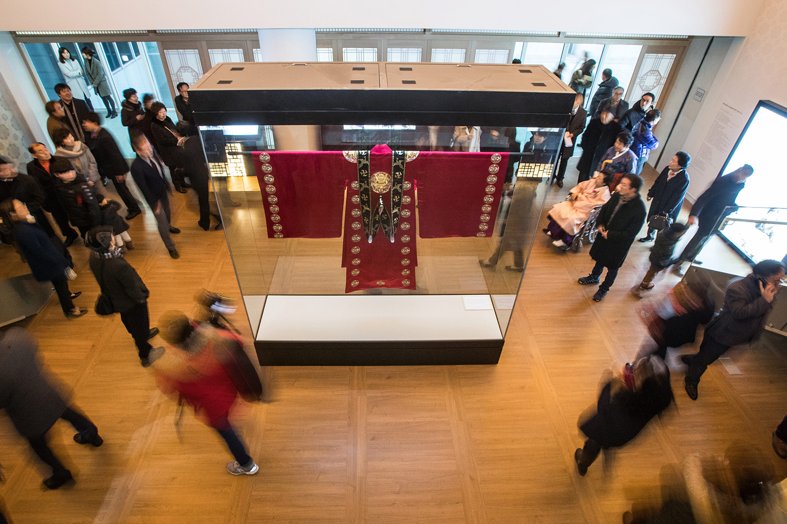 이날 개관한 전통 복식실은 복층 구조의 목조 건축을 콘셉트로 만들어졌고, 조선 태조 청룡포, 영조 홍룡포, 왕비 적의 및 원삼을 비롯하여 복온공주(福溫公主)의 활옷 등 화려하고 아름다운 궁중복식의 정수(精髓)를 만나볼 수 있다.