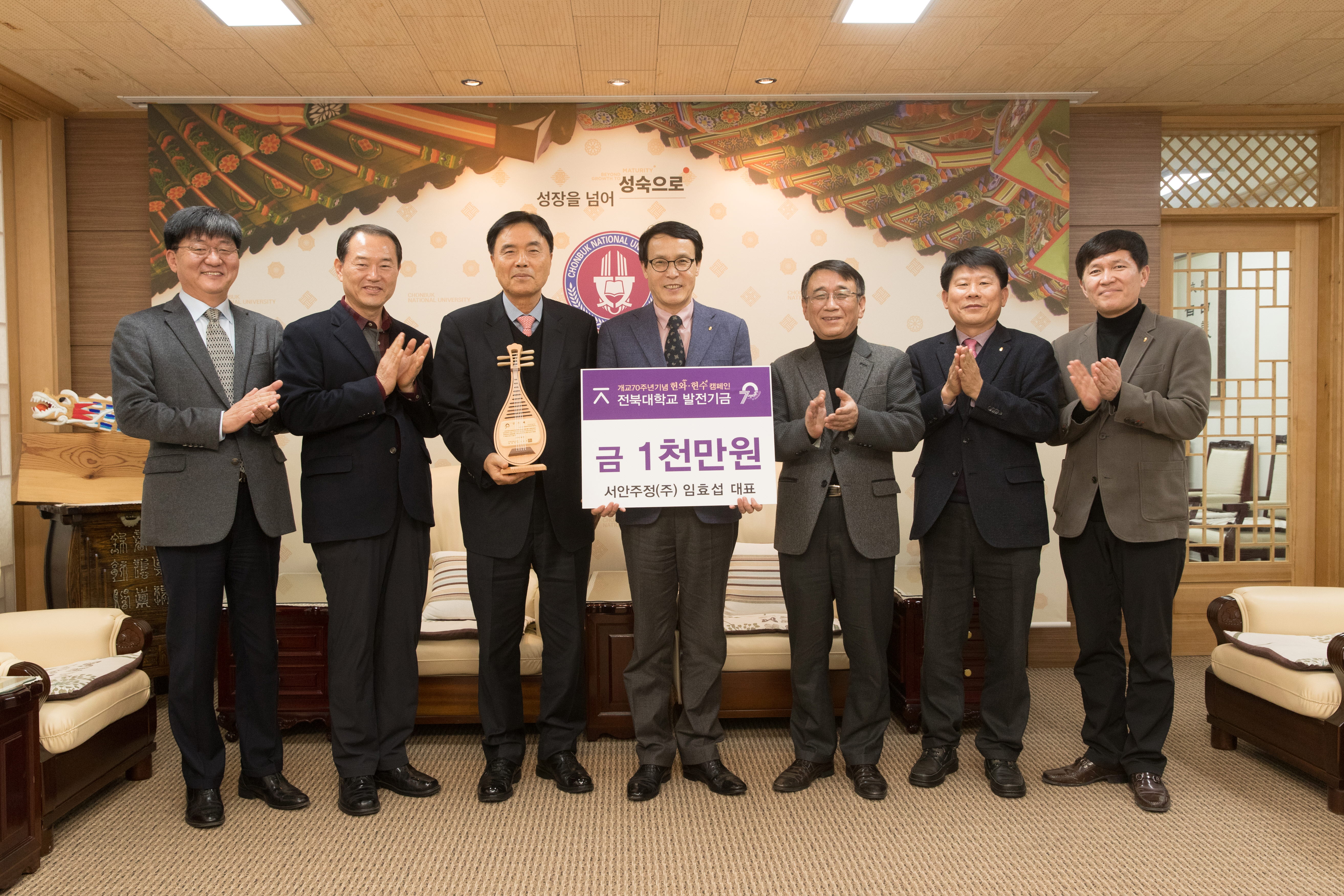 서안주정(주) 임효섭 대표가 대학 발전을 기원하며 1천만 원의 발전기금을 기탁했다.