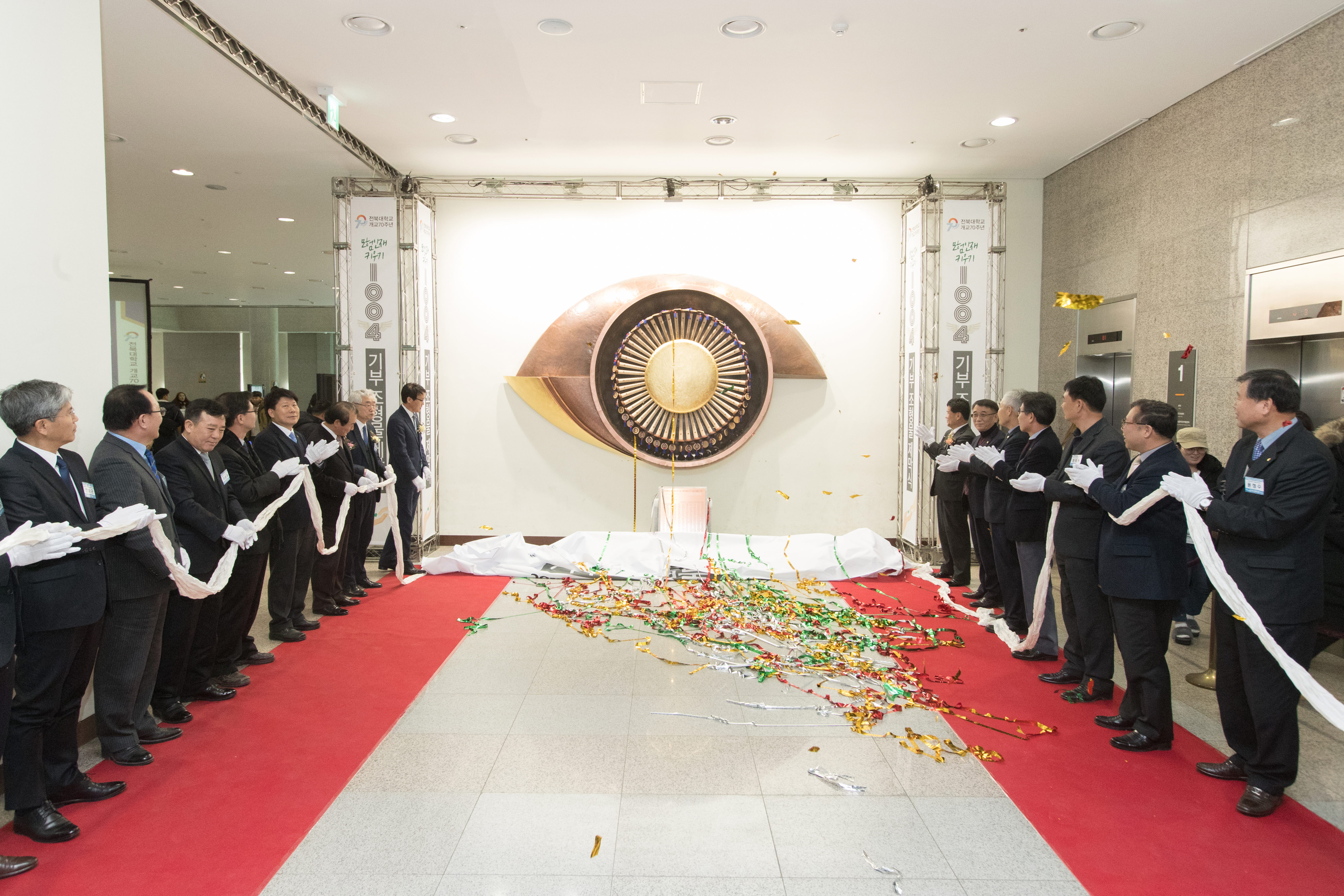 또한 그간 진행해왔던 1004 기부 릴레이에 참여한 기부자들의 이름을 명예의 전당에 새겨 감사의 뜻을 전하고, 미술학과 임승택 교수가 기부한 조형물을 전시하는 행사도 가졌다.