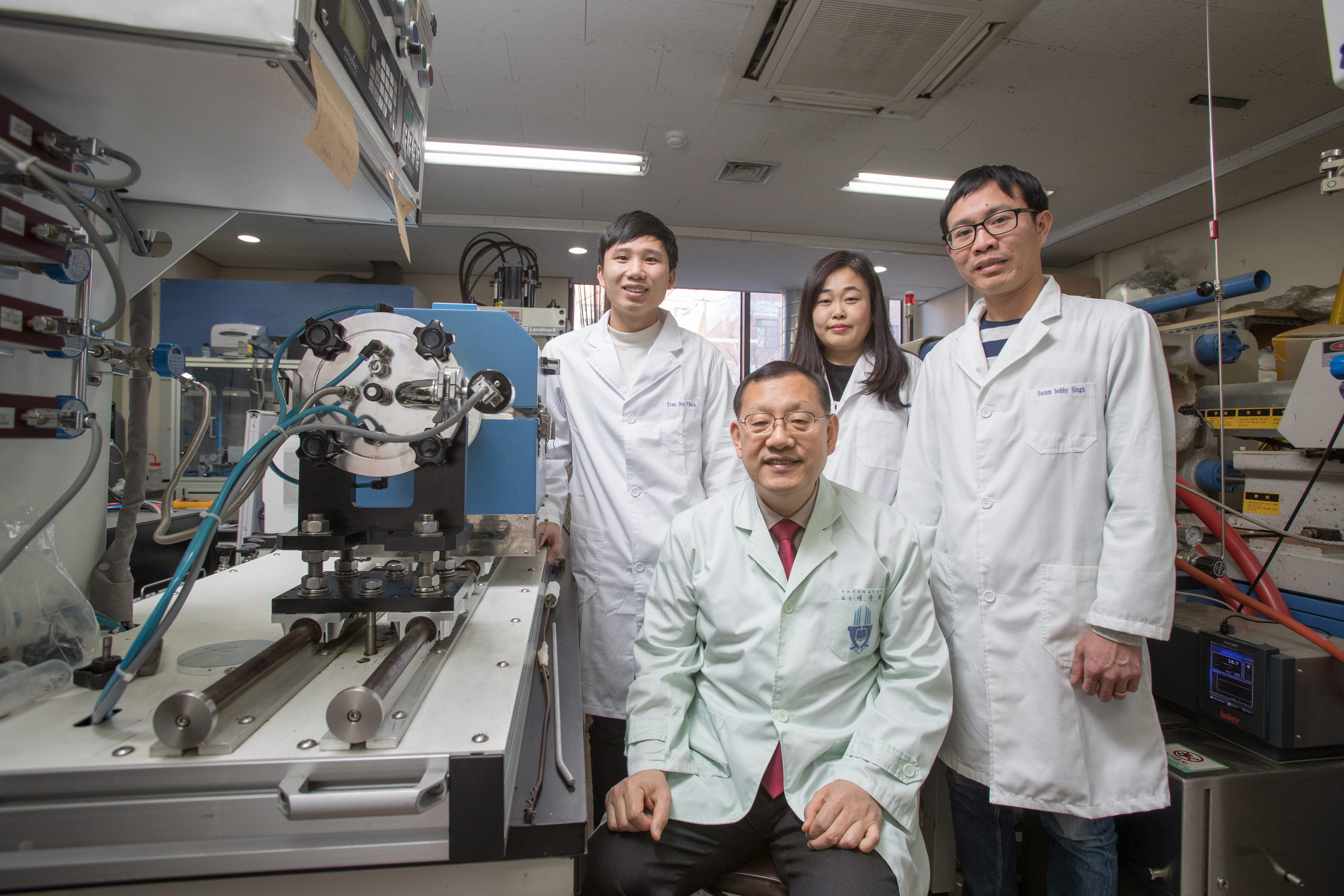 이번 학회에서 이 교수 연구팀 박옥경 연구교수와 후 이빈 대학원생(박사과정), 투엔 탄 투안 대학원생(박사과정), 김남훈 교수 등은 질화 보론-철-카본 나노튜브/폴리이미르 복합재료의 합성과 물성에 관한 연구를 통해 최우수논문상을 수상했다.