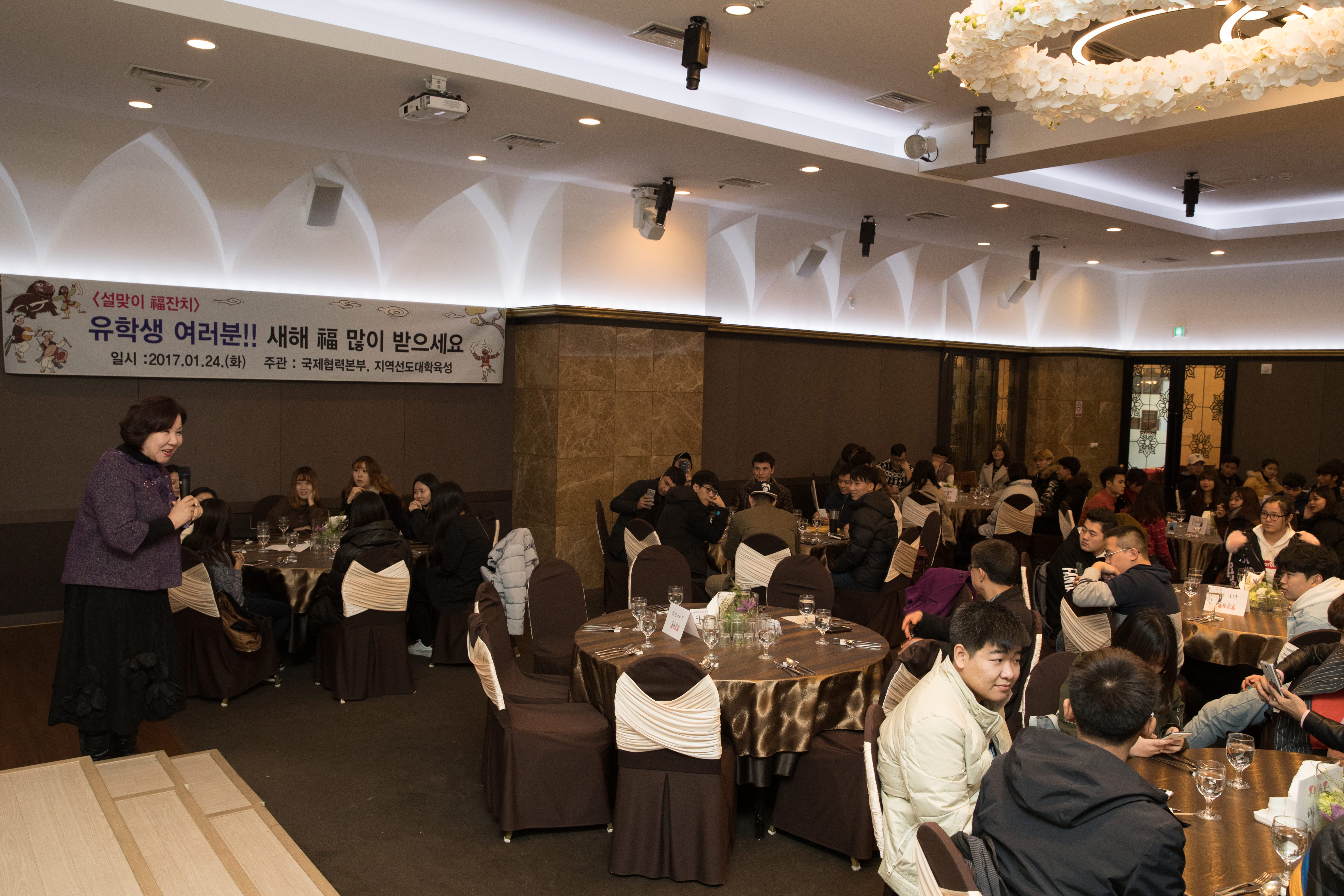 우리대학은 1월 24일 12시 대학에 재학 중인 유학생 450여 명을 점심 식사에 초대해 ‘설날 福 잔치’를 열고 대학 직원과 유학생 간 소통의 시간을 가졌다.